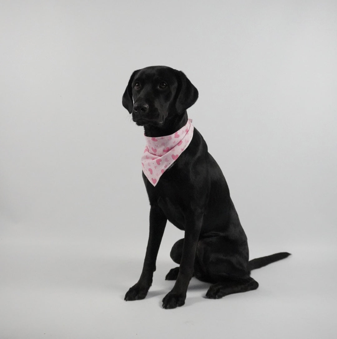 Valentine’s heart print pet bandana , adjustable sizing available, snap buttons in the back! no velcro, no ties! Super durable