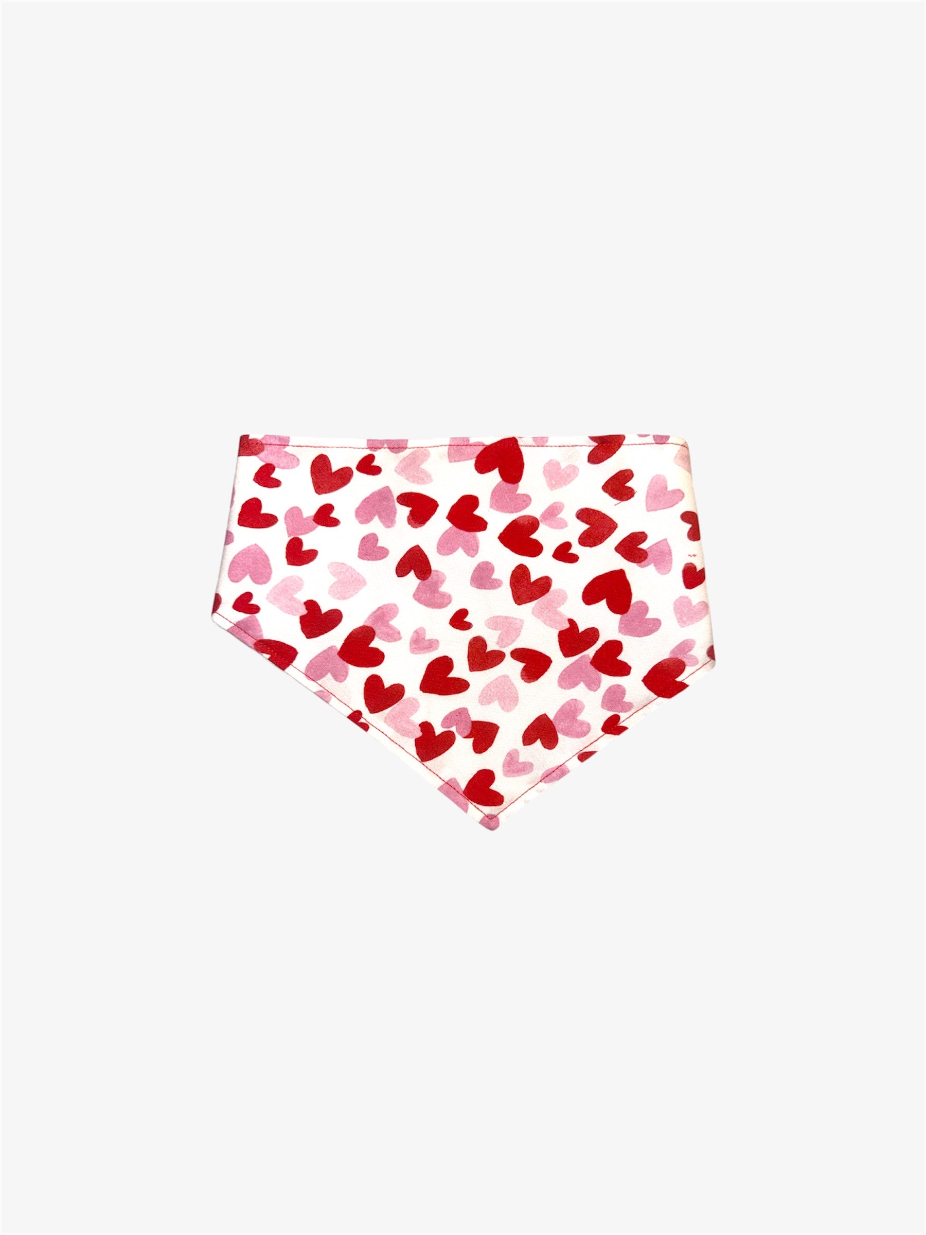 Valentine’s heart print pet bandana , adjustable sizing available, snap buttons in the back! no velcro, no ties! Super durable