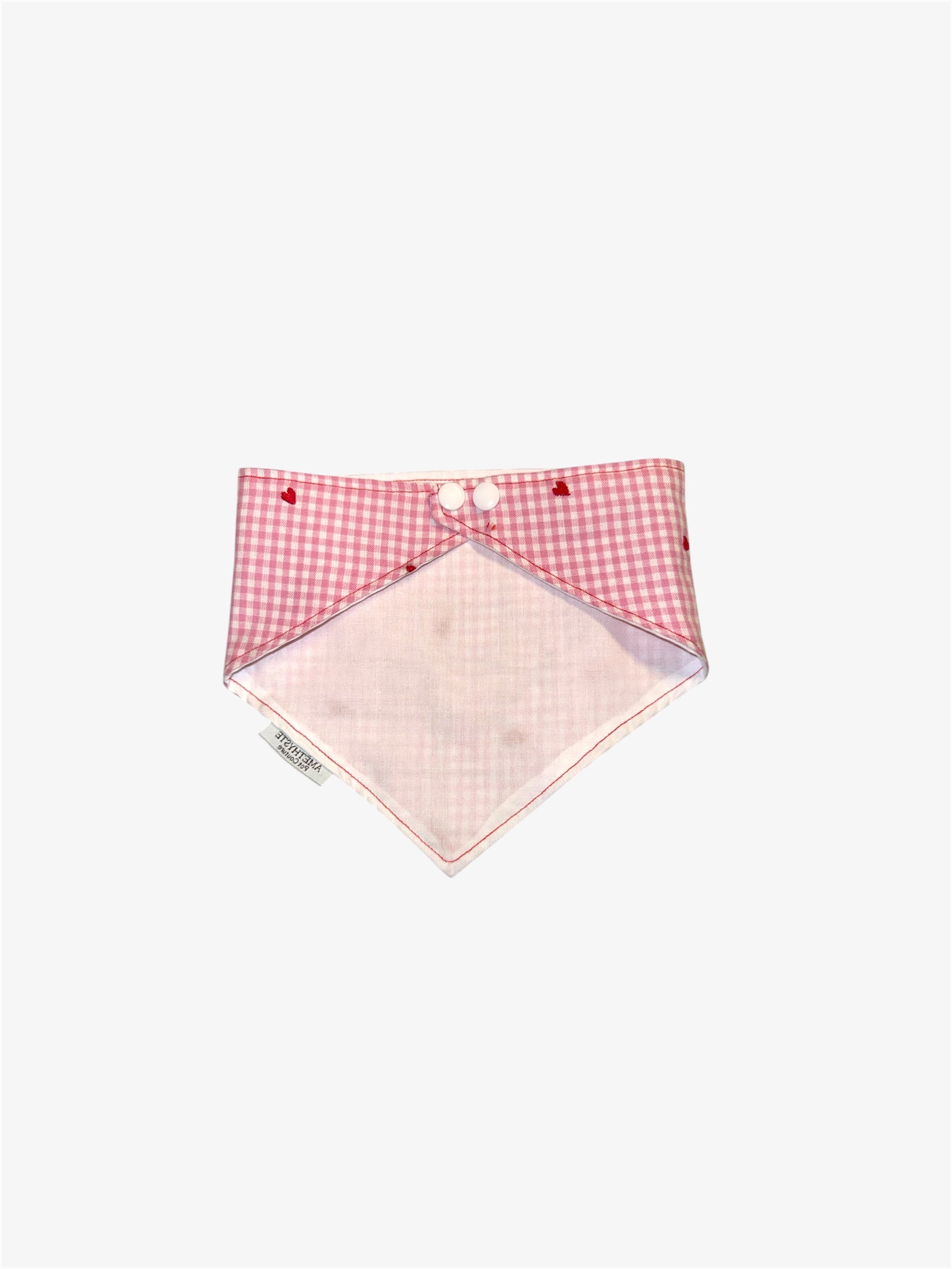 Valentine’s heart print pet bandana , adjustable sizing available, snap buttons in the back! no velcro, no ties! Super durable