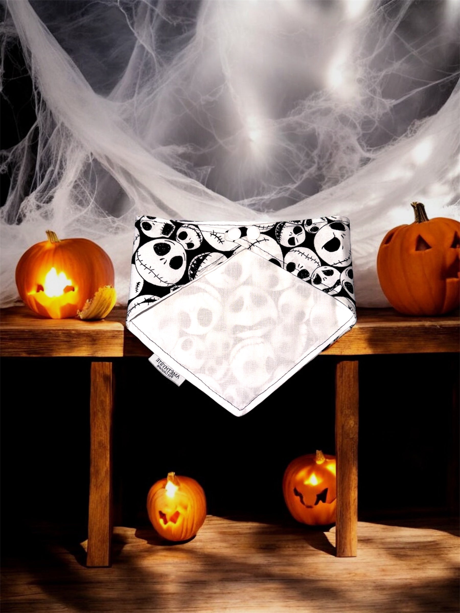 Skeleton Halloween print pet bandana, adjustable sizing available